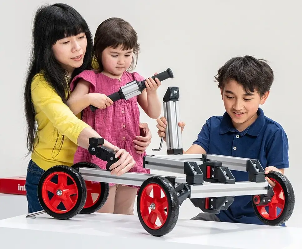 El Adventure Kit ofrece infinitas posibilidades a los aspirantes a creadores, con Rides de tamaño pequeño y mediano que crecen con tu hijo desde que empieza a andar hasta los primeros años de la adolescencia.
