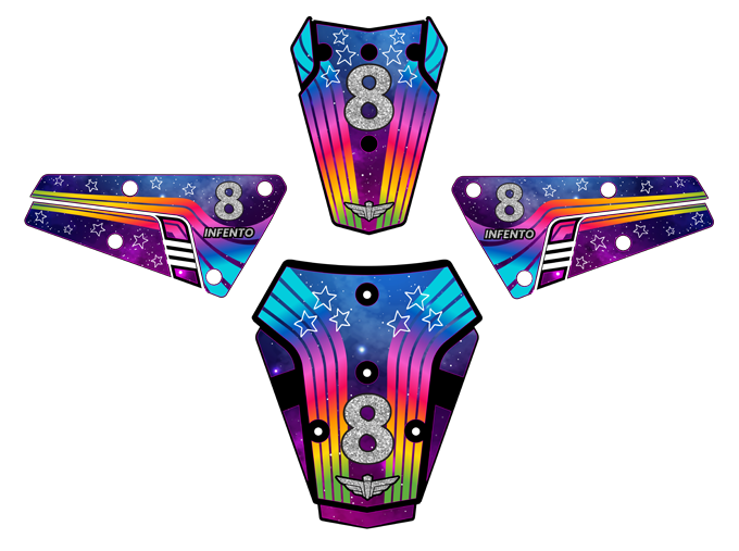 Upgrade your Ride with stylish Fairings! Includes four fairings and two sticker sets—Racing and Galaxy—for endless customization and epic adventures!