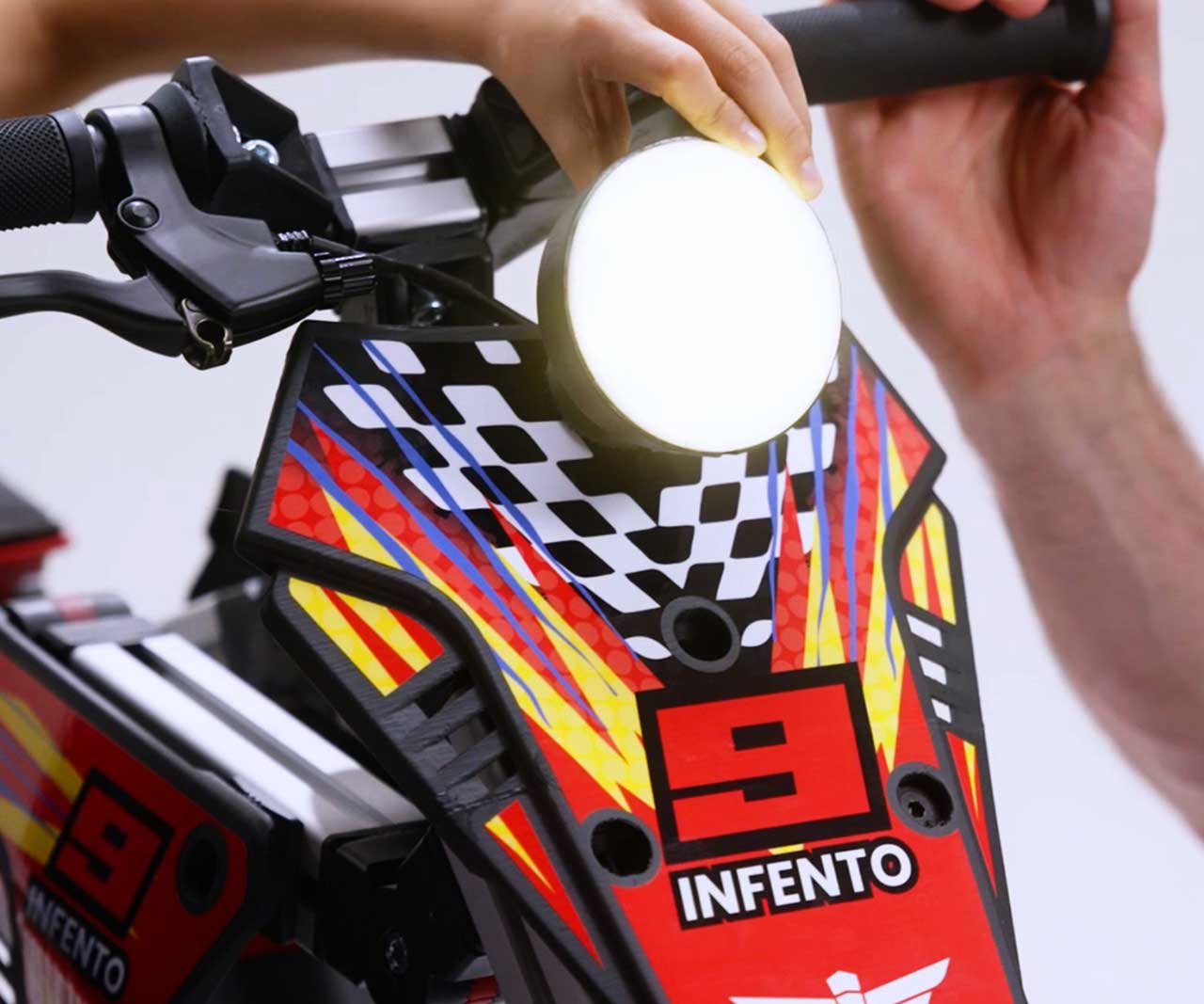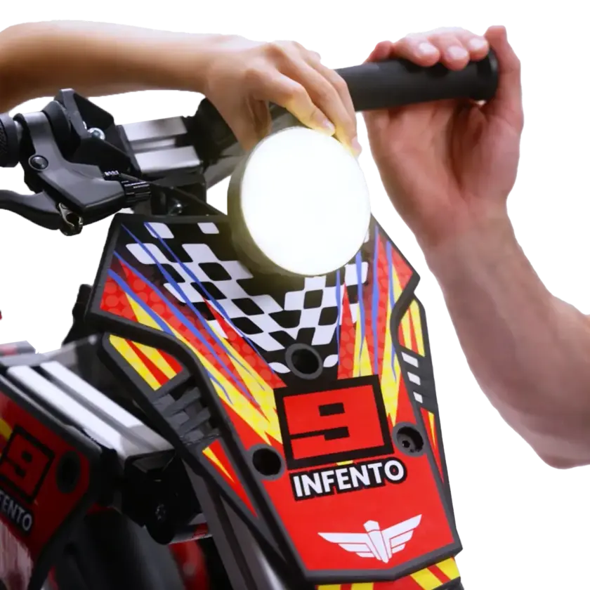 Infento’s lithium-ion Back and Front Light offers three modes—bright, standard, and flashing. Includes both front and back lights with two white and two red discs for versatile setups. Enhances safety, visibility, and style for every ride!