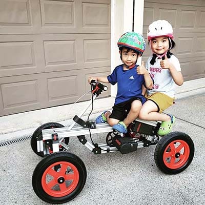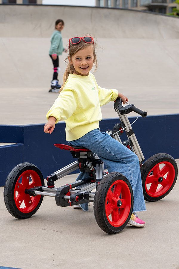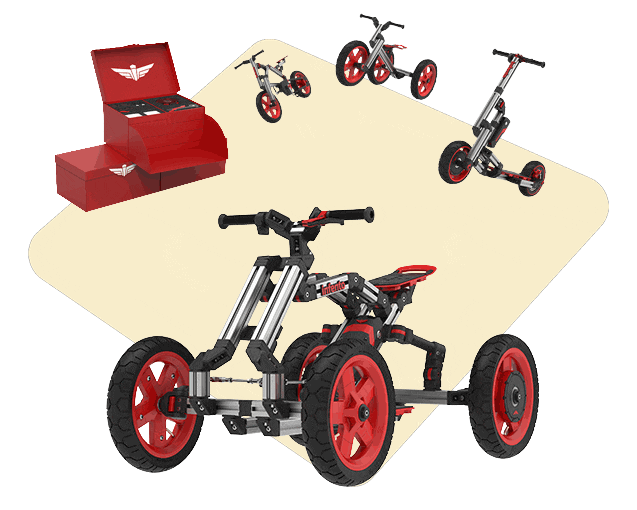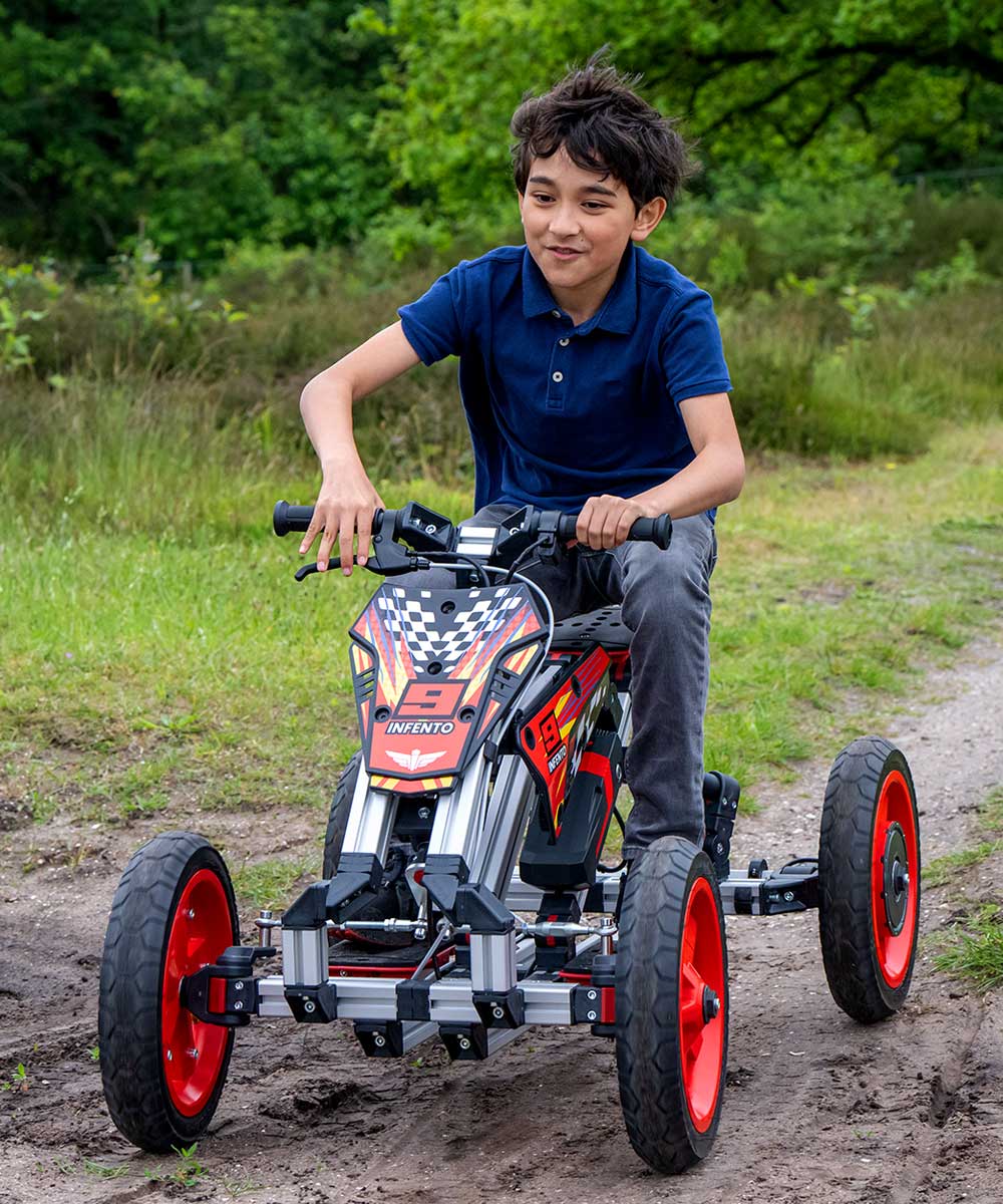 Our Kits feature 100% modular parts that empower families to create life-size, rideable vehicles together. From walkers and scooters to go-karts and electric quads, Infento lets you build infinite Rides that grow with your child.
