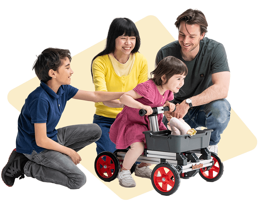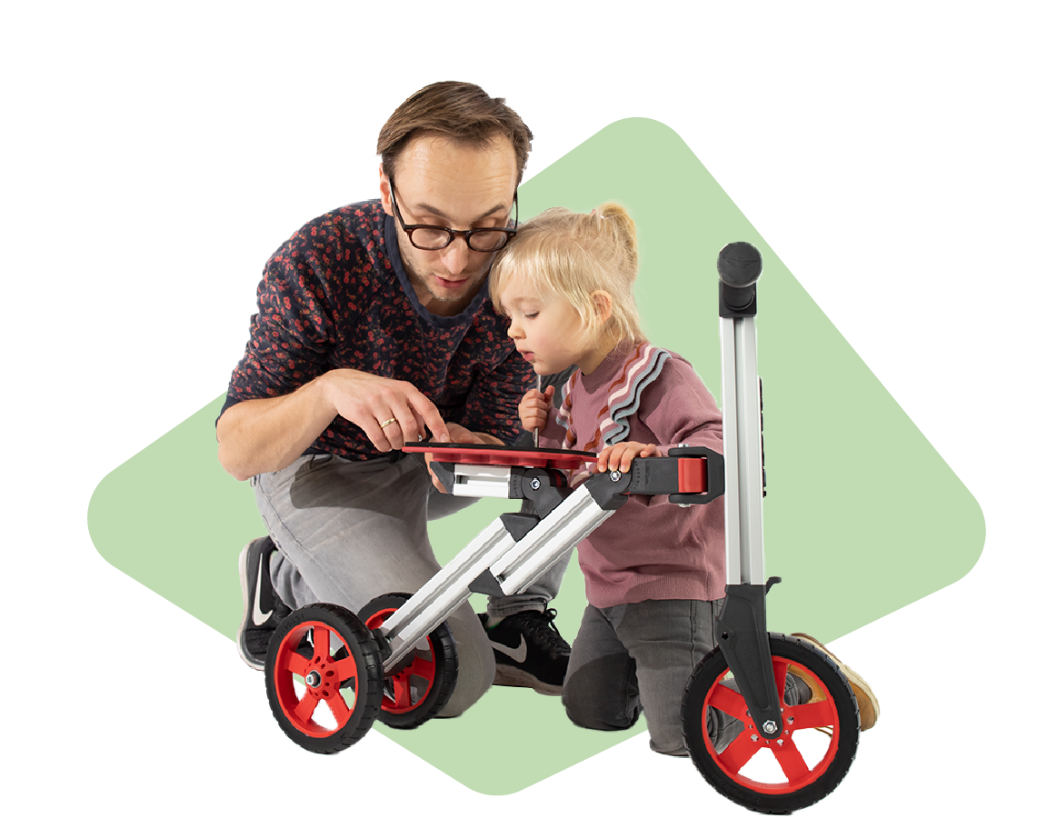 Nos kits comportent des pièces 100 % modulaires qui donnent aux familles les moyens de créer ensemble des véhicules roulants grandeur nature. Des déambulateurs et trottinettes aux karts et quads électriques, Infento te permet de construire à l’infini des Rides qui grandissent avec ton enfant.
